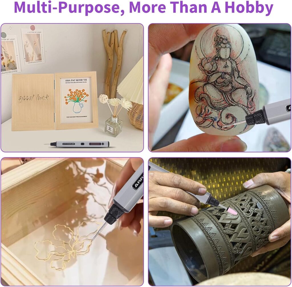 EFFORTLESS & INTUITIVE CONTROLS- Our mini engraving pen revolutionizes the operation process, enabling seamless speed and direction adjustments of the SGS engraving tool with a single hand. The power button effortlessly toggles between directions, while the gear adjustment key offers four RPM modes tailored to diverse needs. Effortlessly switch between forward and reverse within each mode for a tailored and intuitive user experience.