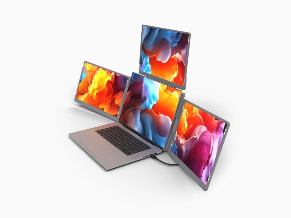 –Single USB-C Simplicity: A single USB-C cable connects 3 300-nit displays. Benefit from a clutter-free setup for 11″ to 18″ laptops.