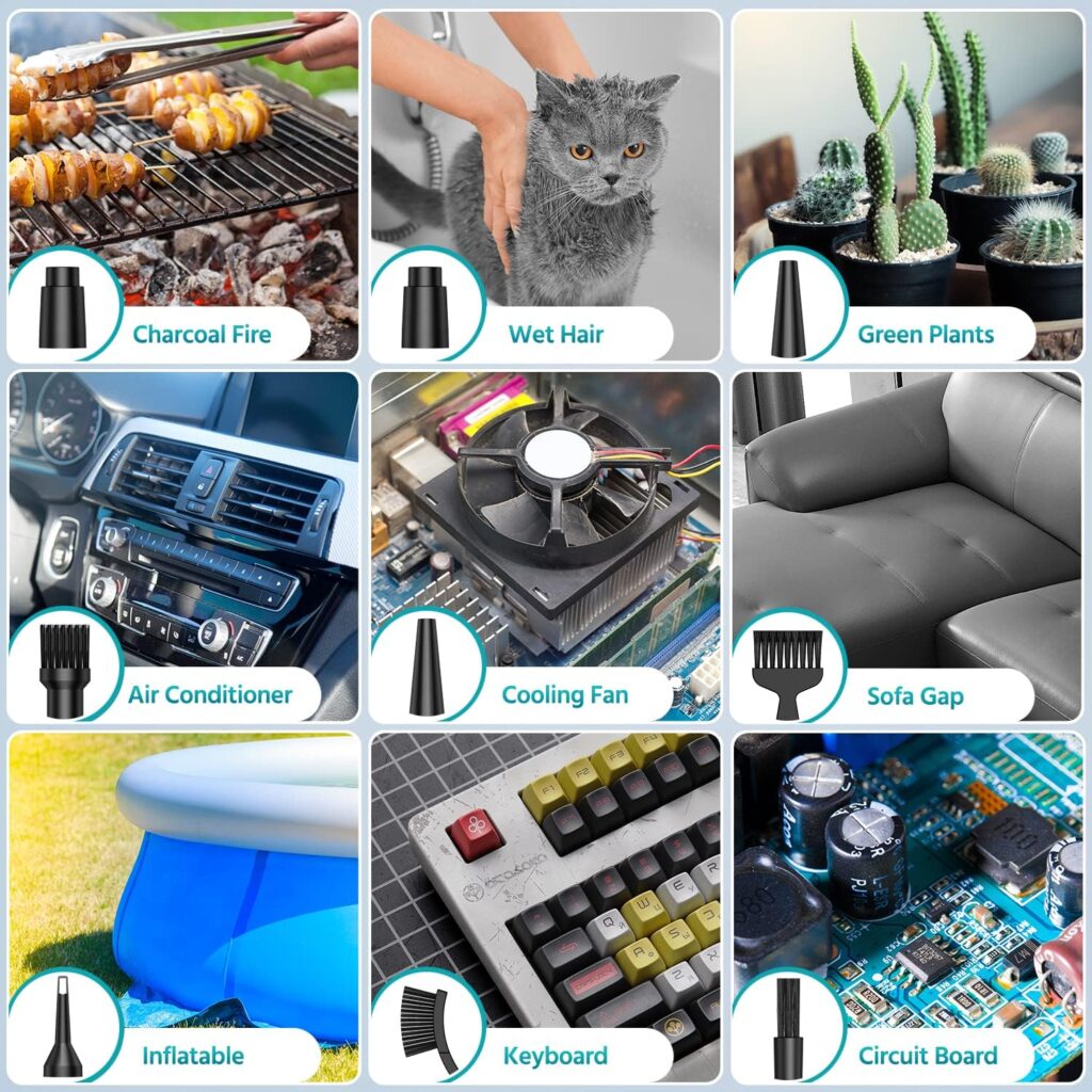 【 3-Speed Wind】 Cordless air duster Blowing force 1.86-2.51OZ,Compressed air duster with an upgraded 12,000RPM motor that provides extra strong airflow for deep cleaning. Air duster is also equipped with LED lights, which play the role of lighting when you use it in a dark environment.